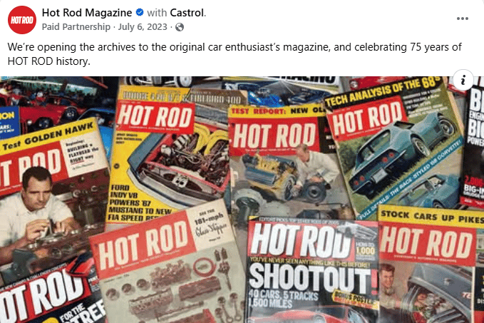 Throughout the 12-month rollout, Castrol received a robust mix of sponsorship deliverables, including official logo integration, editorial features, co-branded promotions, targeted brand media, sponsorship of HOT ROD’s extensive digital archives, and a full-season sponsorship of HOT ROD Garage. Castrol’s presence extended into major live events, including HOT ROD Power Tour and HOT ROD Drag Week, where high-impact, in-person moments engaged fans directly and reinforced the brand’s long-standing connection to the community.